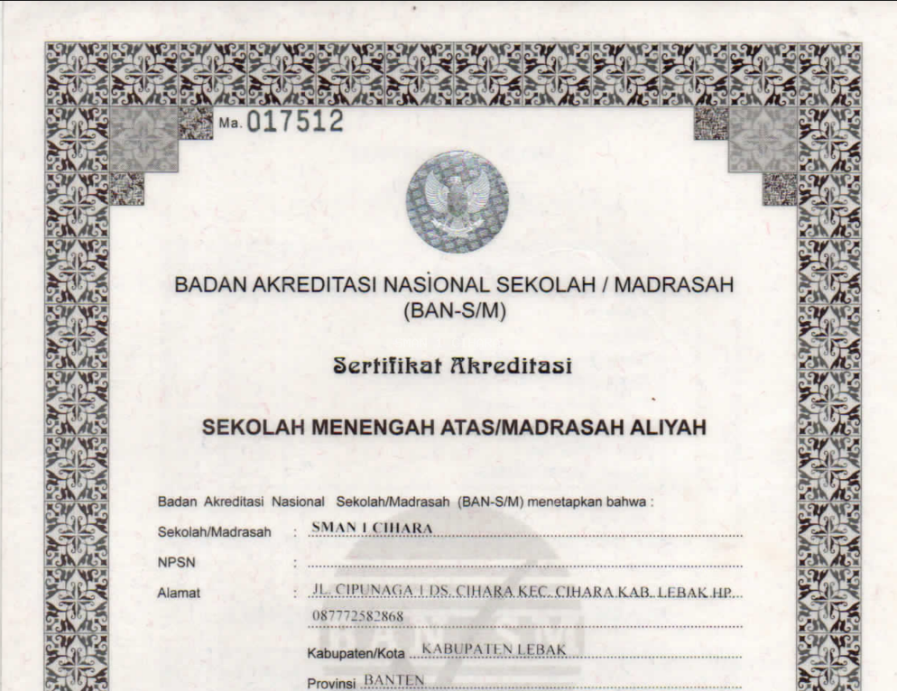 Akreditasi SMAN 1 Cihara Tahun 2018